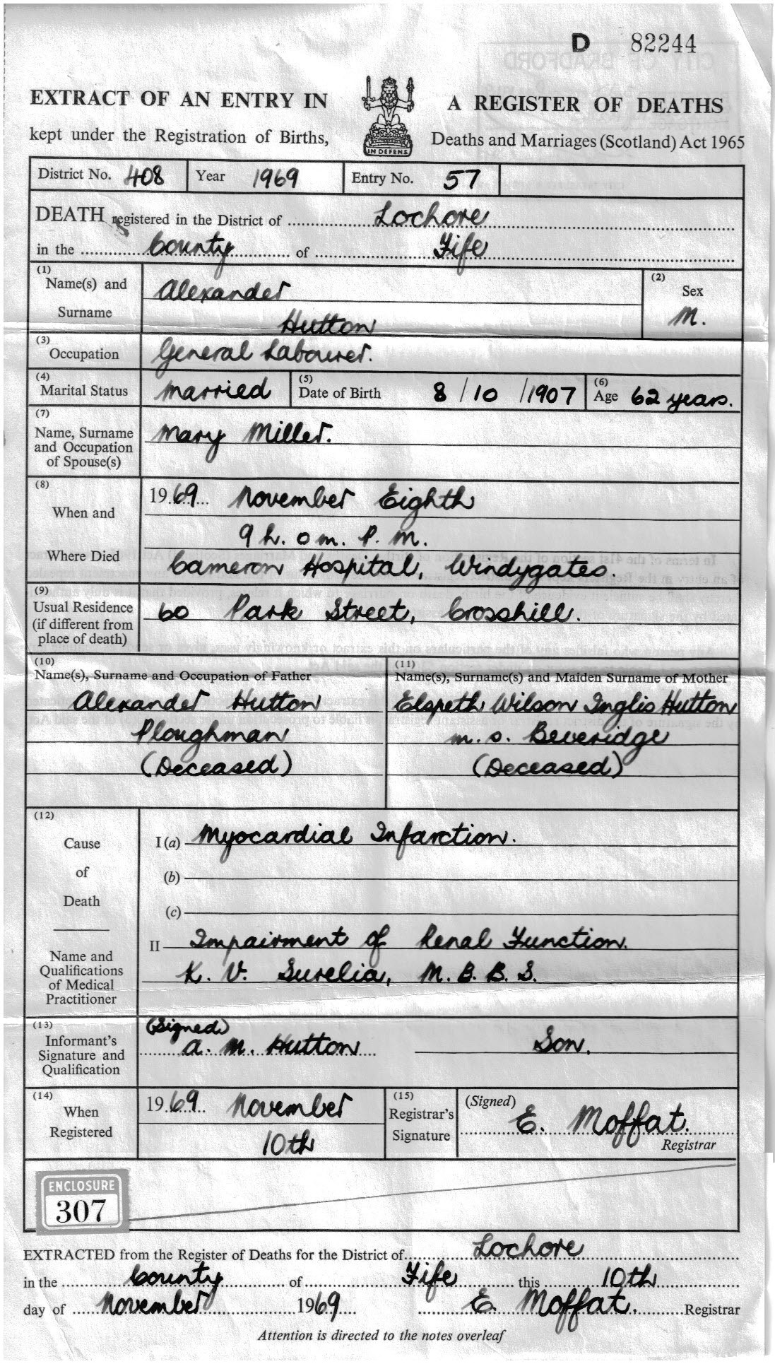 Death Certificate Lochore 1969 No 57