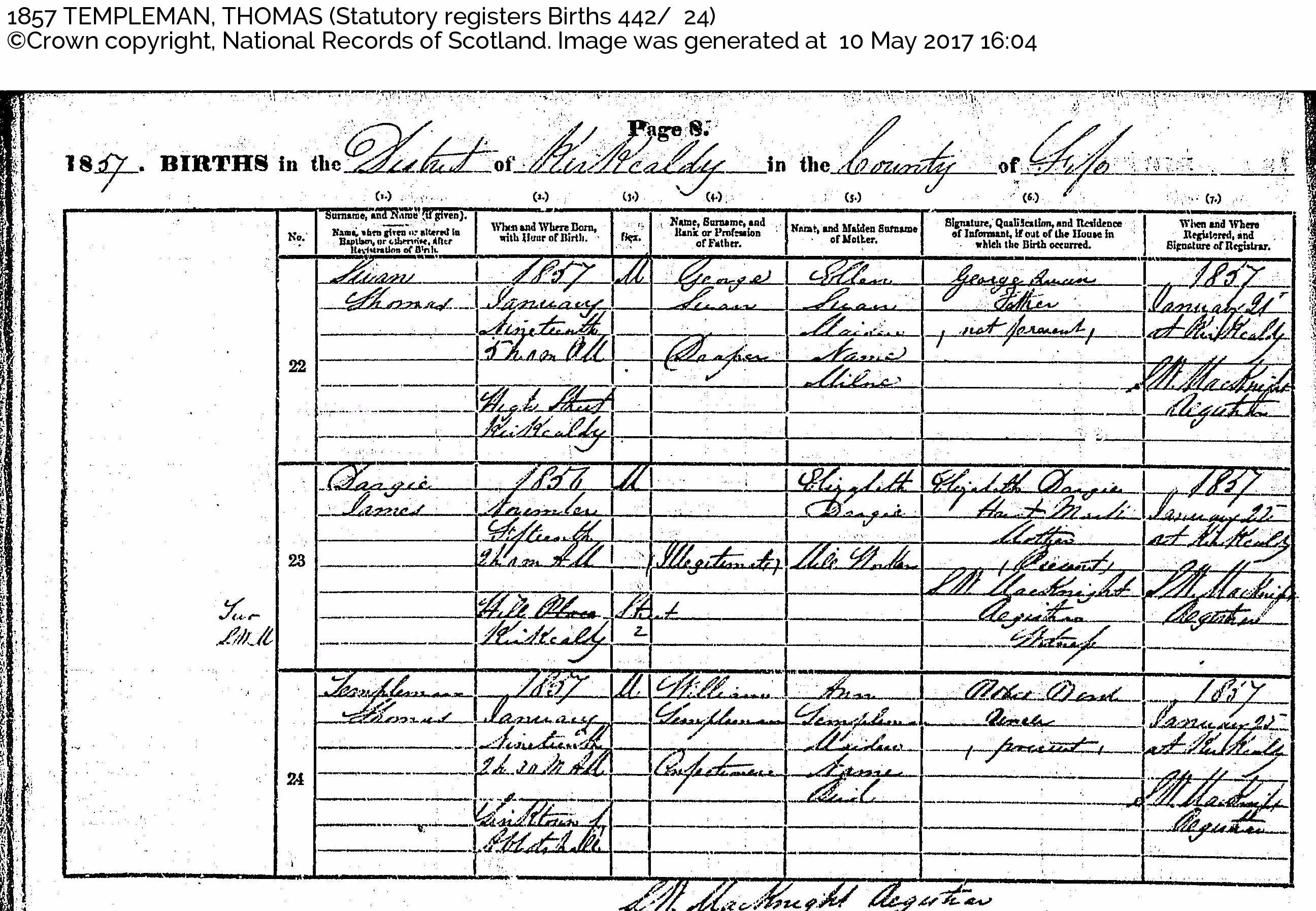 Birth Register Kirkcaldy 1857 page 8