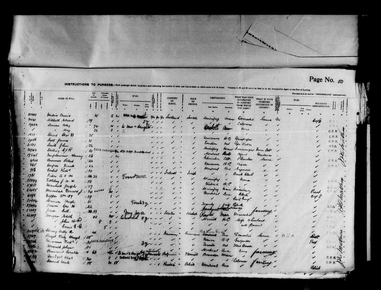 Page:50 Ship: Canada Date: May 1910 Journey: Liverpool to Quebec